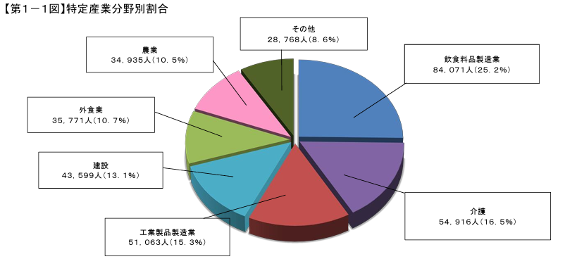 前回と同様に、飲食料品製造業分野が最も多く、 84,071人と全体の約25%を占める結果となりました。