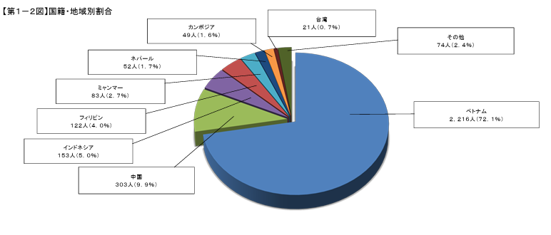 ベトナム人特定技能2号人数が2,216人と全体の約72%を占めております。