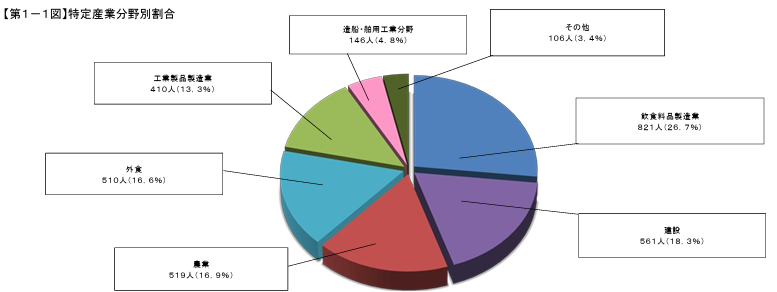 飲食料品製造分野の人数が大きく増え、全体に占める